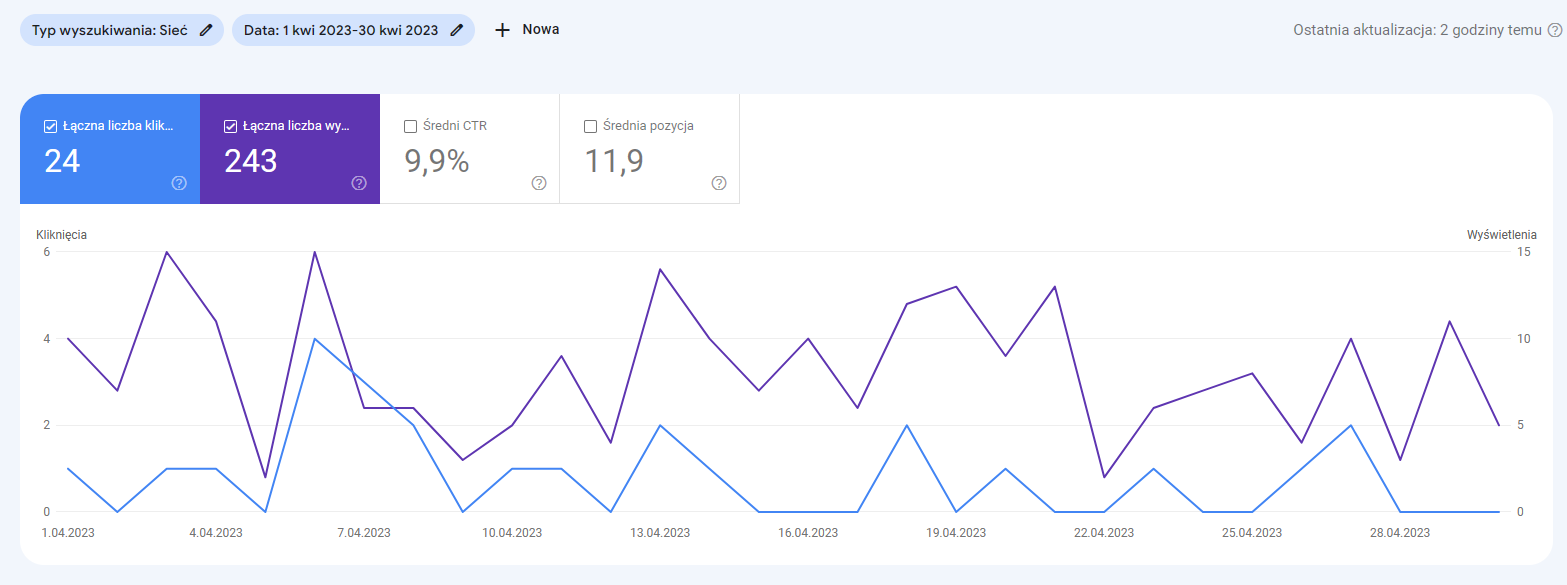 Strona firmowa była niedokończona, brakowało na niej treści oraz ładowała się wolno. Dodatkowo nie pokazywała się na zakładane słowa kluczowe.